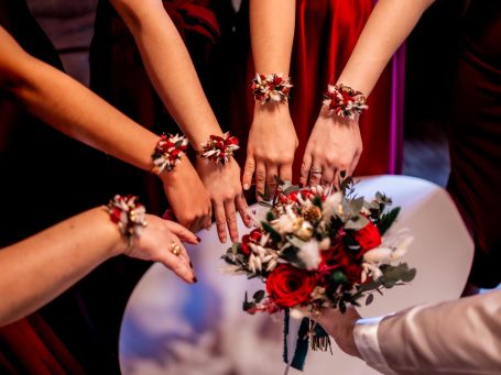 Réalisés en fleurs séchées et stabilisées, ces accessoires apportaient une touche fraîche et élégante, ponctuant la journée de notes colorées, chaleureuses et pleines de vie.