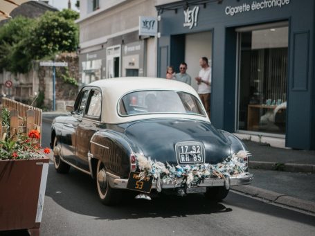 et la voiture, délicatement fleurie pour accompagner leur chemin vers l’avenir.