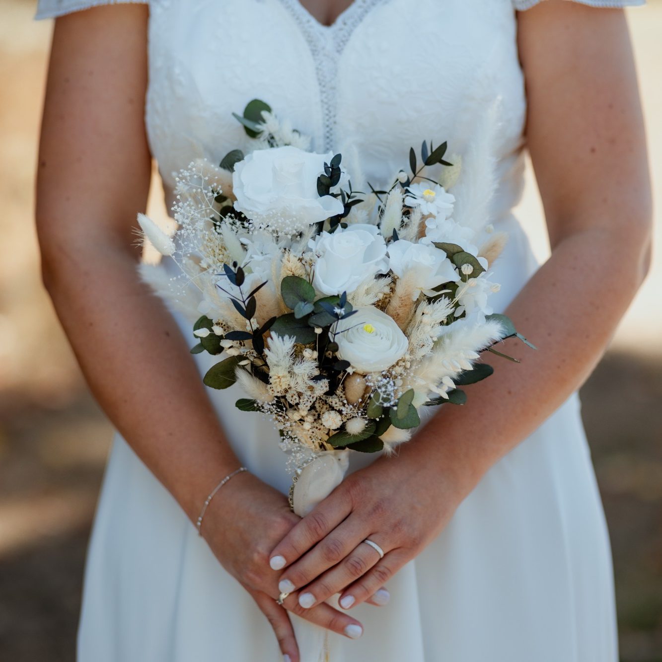 Vous vous mariez et vous souhaitez des accessoires et décoration en fleurs séchées et stabilisées ? Rencontre d'Automne est un atelier où la passion pour les fleurs séchées prend vie. Spécialisée dans la création de décorations florales durables, je m'engage à offrir des pièces qui préservent la beauté de la nature. Mon amour pour les détails et la créativité se reflètent dans chacune de mes créations. Des créations sur mesure, 100 % fait main dans mon atelier en Vendée 85. Retrait à l'atelier ou installation sur votre lieu de réception aux alentours des Herbiers. Envois possibles pour vos accessoires et bouquet de mariée dans toute la France.